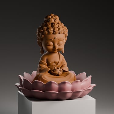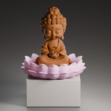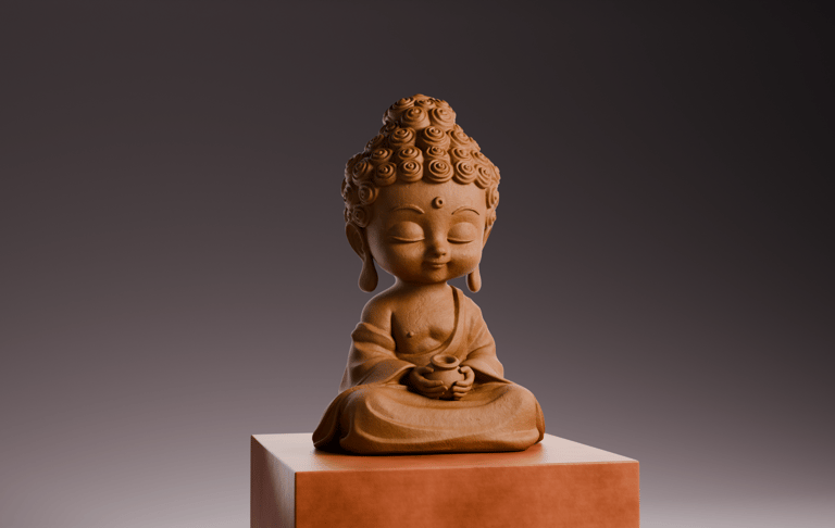 Sérénité en 3D Figurine inspirée du Bouddha rieur (Budai), réinterprétée dans un style kawaii et minimaliste